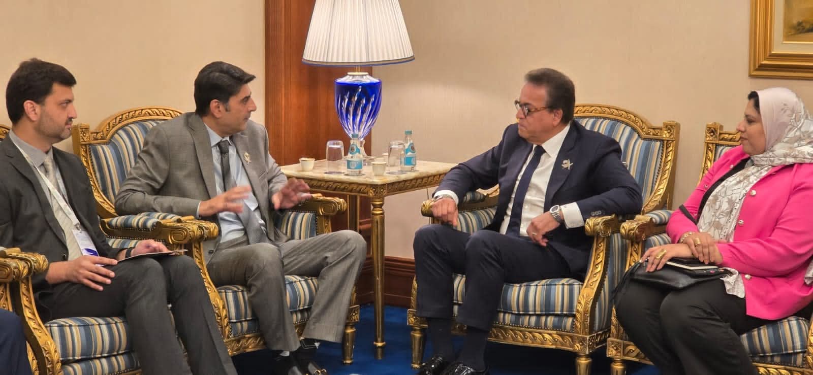 التقى الدكتور خالد عبدالغفار، نائب رئيس مجلس الوزراء وزير الصحة والسكان، سيد مصطفى كمال، وزير الصحة الباكستاني، على هامش القمة الوزارية العالمية السادسة للصحة النفسية، المنعقدة في العاصمة القطرية الدوحة.