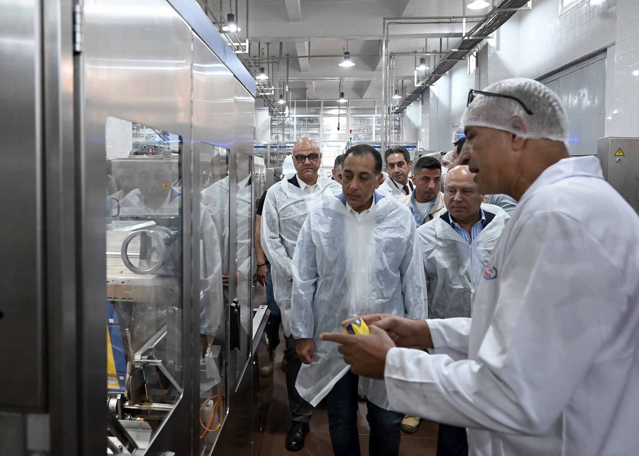 وخلال جولته بالمصنع، تعرف رئيس الوزراء على مراحل التصنيع المُختلفة وخط الإنتاج المُتكامل بمصنع “عبور لاند ٢” المُتخصص في صناعة الجبن الأبيض، حيث تم مشاهدة مراحل الانتاج، والبسترة، والترشيح، وإضافة الملح وغيره من المكونات، ثم مرحلة اللبن المُركز ودفعه نحو مرحلة صناعة الجبن، كما تم تفقد صالة الإنتاج، والمرور على ماكينات “التترا باك”، وماكينات التجميع، والتغليف، والطباعة، ومعرض منتجات الشركة المعدة للسوق المحلية والتصدير.