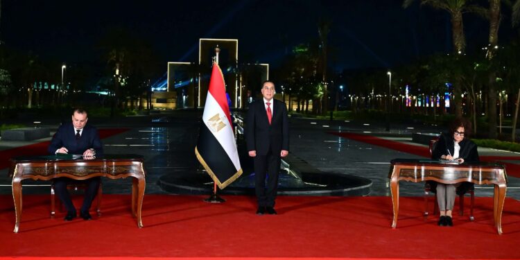 شهد الدكتور مصطفى مدبولي، رئيس مجلس الوزراء، اليوم، مراسم توقيع مذكرة تفاهم بين “صندوق التنمية الحضرية” و”مؤسسة عزة فهمي لتنمية الصناعات الحرفية واليدوية” لإنشاء مركز ثقافي وتدريبي متكامل لتعليم الحرف اليدوية، بمنطقة درب اللبانة، وذلك على هامش انطلاق مهرجان الفسطاط الشتوي لعام ٢٠٢٥، الذي تحتضنه حديقة تلال الفسطاط.