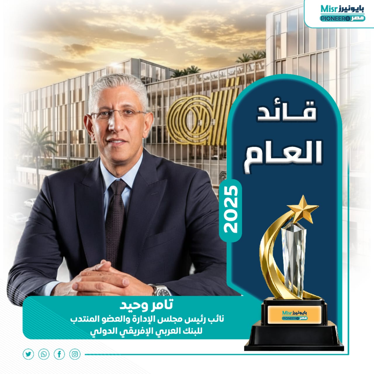 اختارت منصة وموقع «بايونيرز مصر» تامر وحيد، نائب رئيس مجلس الإدارة والعضو المنتدب للبنك العربي الأفريقي الدولي، ليكون «قائد العام 2025»، تقديرًا لدوره البارز في قيادة البنك خلال مرحلة دقيقة من التحديات الاقتصادية المحلية والإقليمية والعالمية، وتحقيق نتائج مالية وتشغيلية قوية عززت من مكانة البنك في السوق المصرفي المصري والإقليمي.