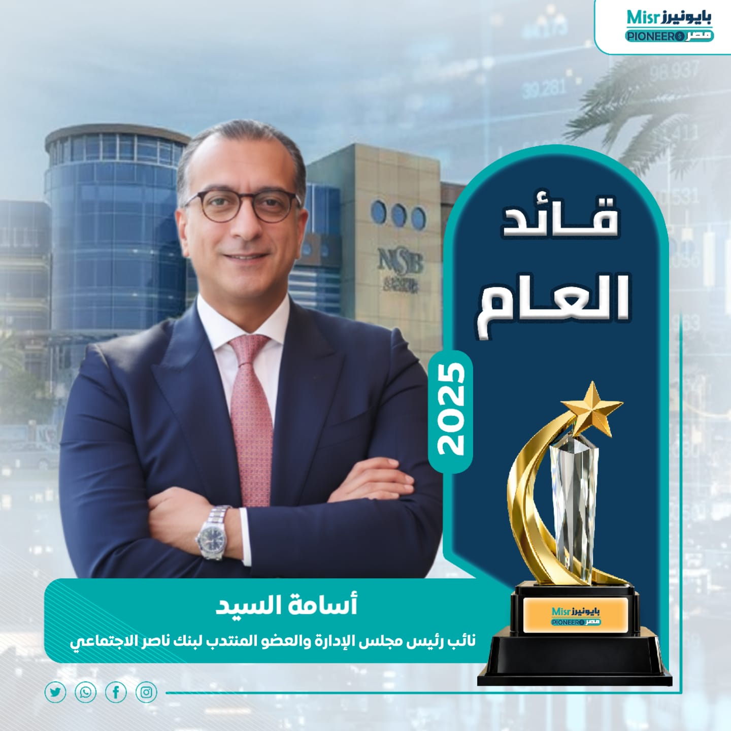 «قائد العام 2025».. أسامة السيد نائب رئيس مجلس إدارة بنك ناصر الاجتماعي