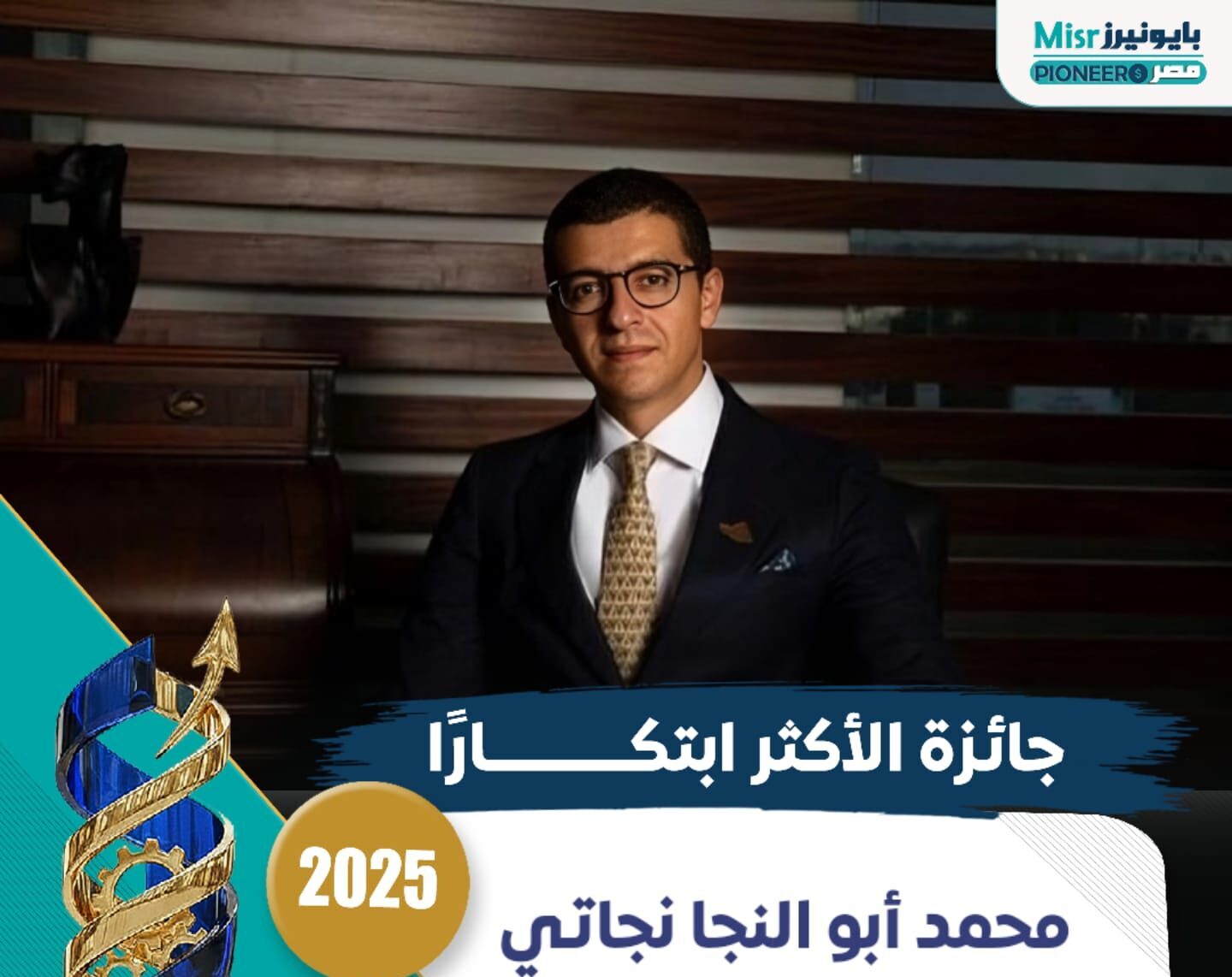 تواصل بايونيرز مصر تسليط الضوء على النماذج الملهمة في عالم ريادة الأعمال والابتكار، حيث منحت جائزة الأكثر ابتكارًا في مصر خلال عام 2025 إلى رائد الأعمال المصري محمد أبو النجا نجاتي، تقديرًا لمسيرته الاستثنائية وإسهاماته المؤثرة في تطوير منظومة التكنولوجيا وريادة الأعمال، وربط الابتكار بالقيم الإنسانية والاستدامة.