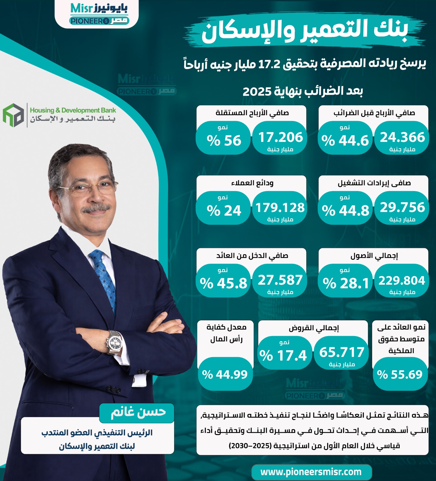 انفوجراف| بنك التعمير والإسكان يختتم عام 2025 بنتائج مالية وتشغيلية قوية